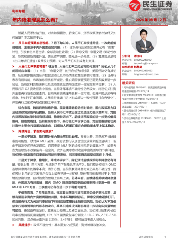 【民生证券】【20240812】利率专题:年内降准降息怎么看?-18页