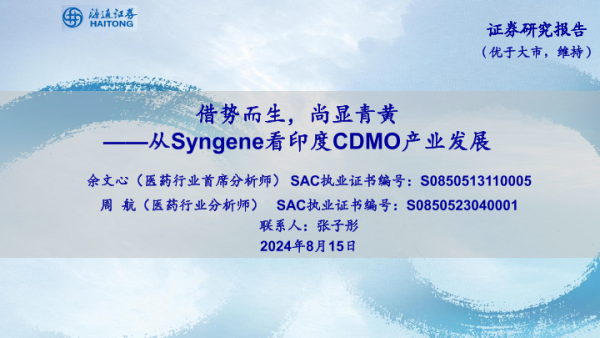 【海通证券】【20240815】医药行业:从Syngene看印度CDMO产业发展,借势而生,尚显青黄-19页
