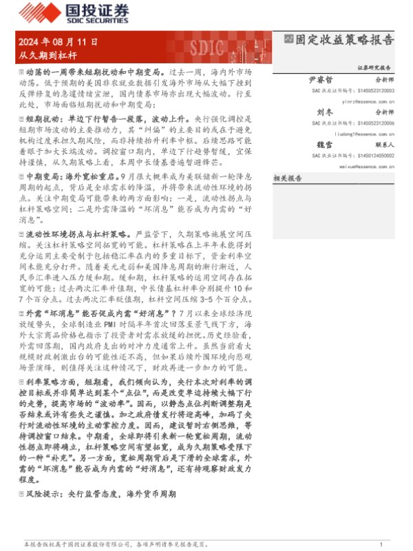 【国投证券】【20240811】固定收益策略报告:从久期到杠杆-10页