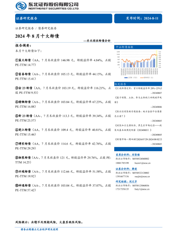 【东北证券】【20240811】固收转债分析:2024年8月十大转债-26页