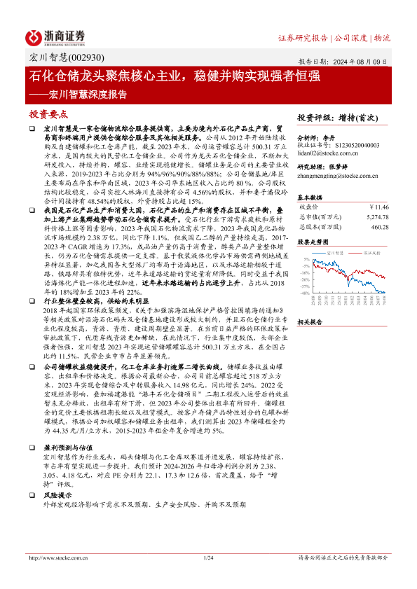 【浙商证券】【20240809】宏川智慧(002930)深度报告:石化仓储龙头聚焦核心主业,稳健并购实现强者恒强-24页