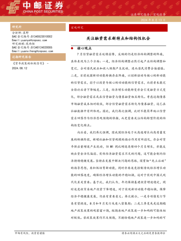 【中邮证券】【20240813】宏观研究:关注融资需求新特点和结构性机会-12页