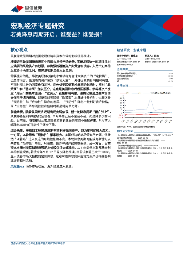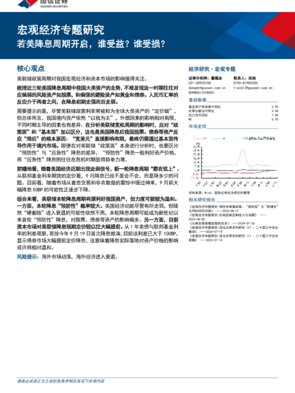 【国信证券】【20240813】宏观经济专题研究:若美降息周期开启,谁受益?谁受损?-17页