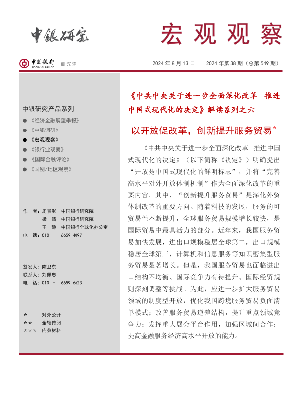 【中国银行】【20240813】《中共中央关于进一步全面深化改革,推进中国式现代化的决定》解读系列之六:以开放促改革,创新提升服务贸易-13页