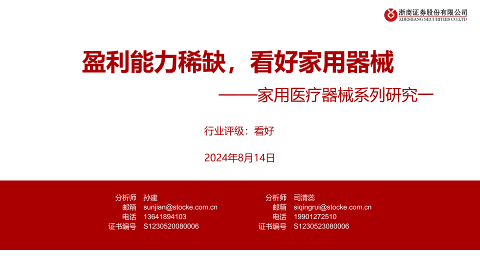 【浙商证券】【20240814】家用医疗器械系列研究一:盈利能力稀缺,看好家用器械-28页