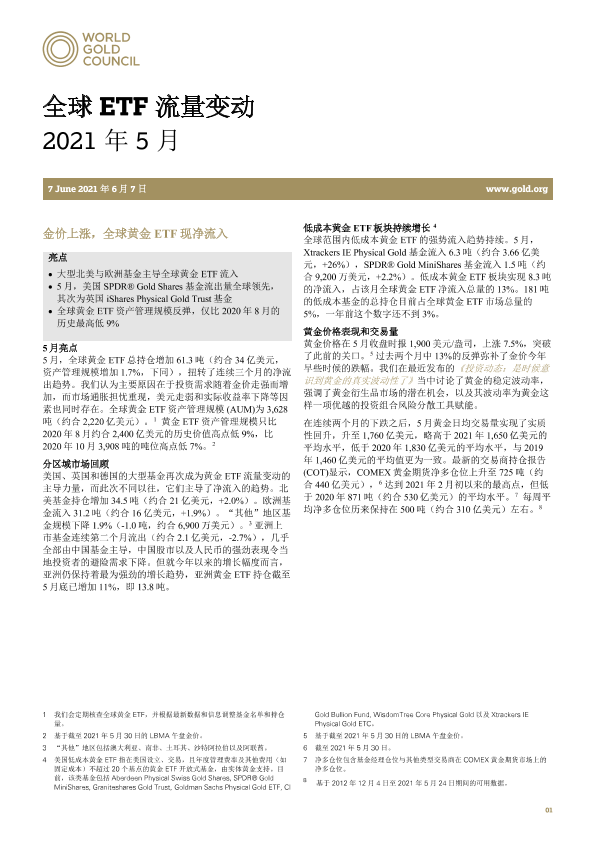 【世界黄金协会】【20210607】世界黄金协会-5月评论:金价上涨,全球黄金ETF现净流入-8页