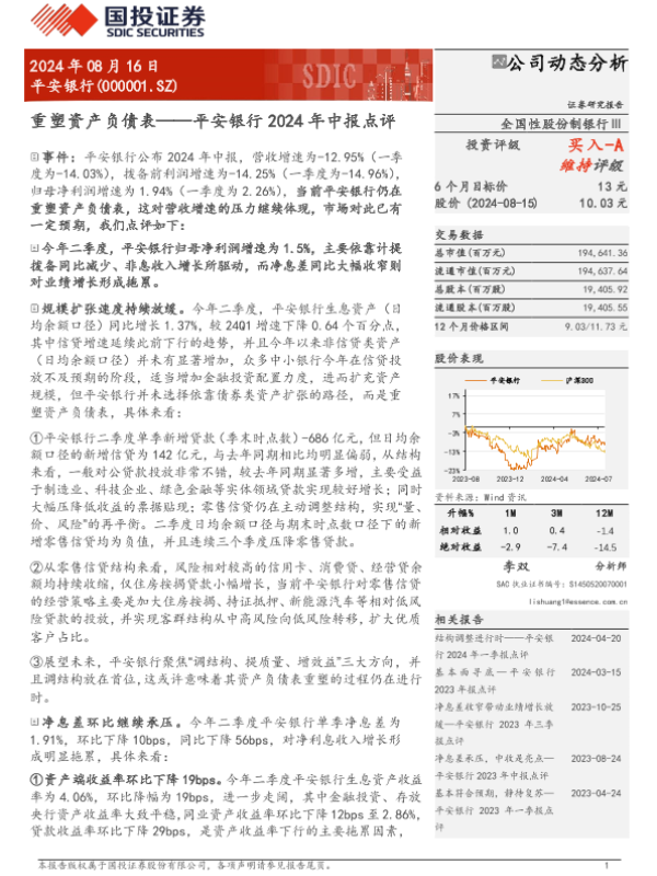 【国投证券】【20240816】平安银行(000001)2024年中报点评:重塑资产负债表-13页
