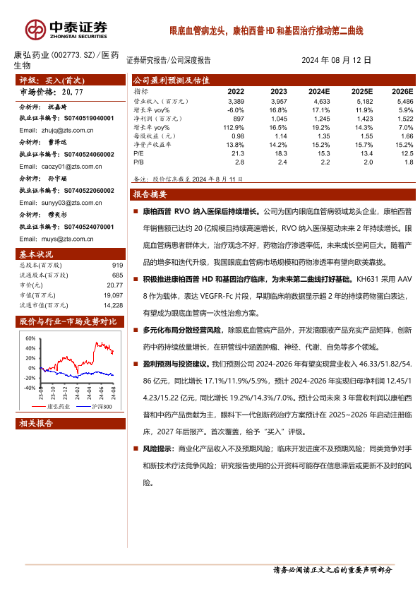 【中泰证券】【20240812】康弘药业(002773)眼底血管病龙头,康柏西普HD和基因治疗推动第二曲线-30页