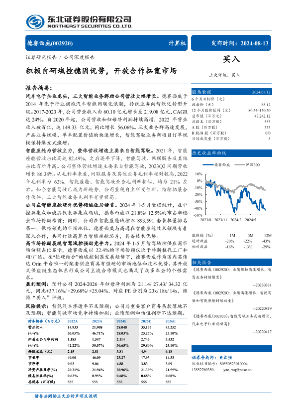 【东北证券】【20240813】德赛西威(002920)积极自研域控稳固优势,开放合作拓宽市场-33页