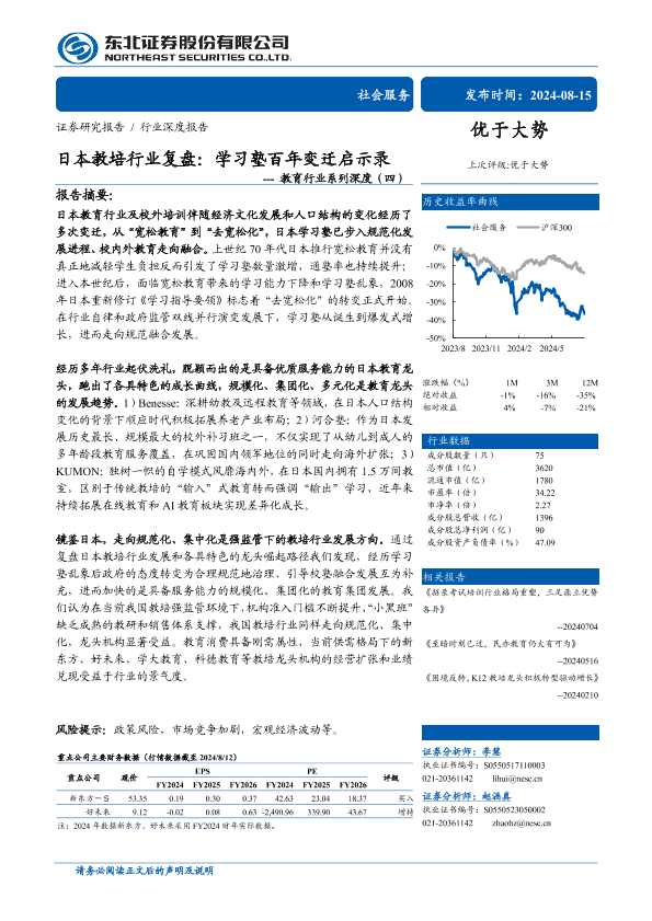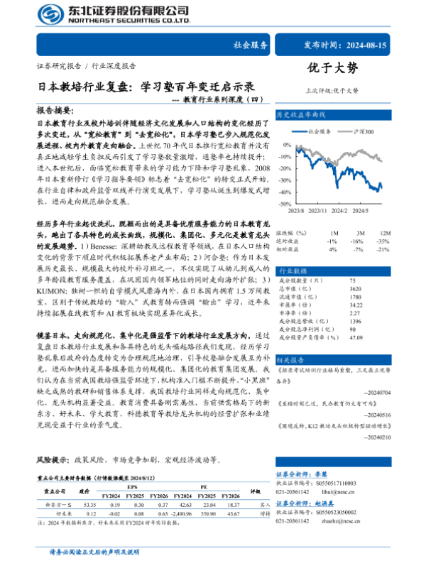 【东北证券】【20240815】教育行业系列深度(四):日本教培行业复盘,学习塾百年变迁启示录-32页