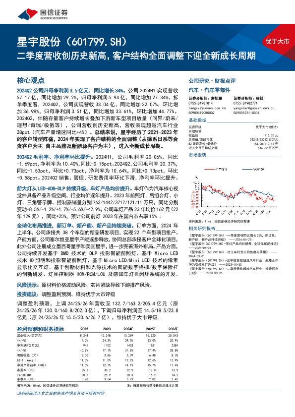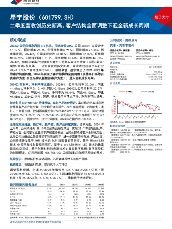 【国信证券】【20240816】星宇股份(601799)二季度营收创历史新高,客户结构全面调整下迎全新成长周期-16页
