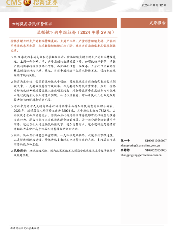 【海通证券】【20240812】显微镜下的中国经济(2024年第29期):如何提高居民消费需求-38页