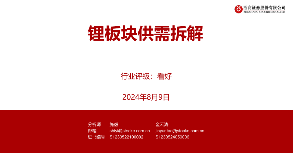 【浙商证券】【20240809】有色金属行业:锂板块供需拆解-12页