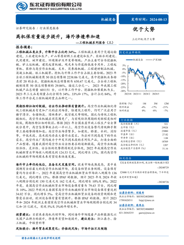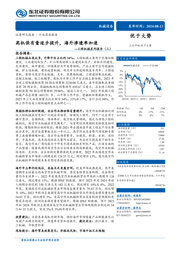 【东北证券】【20240813】机械设备行业工程机械系列报告(三):高机保有量逐步提升,海外渗透率加速-27页