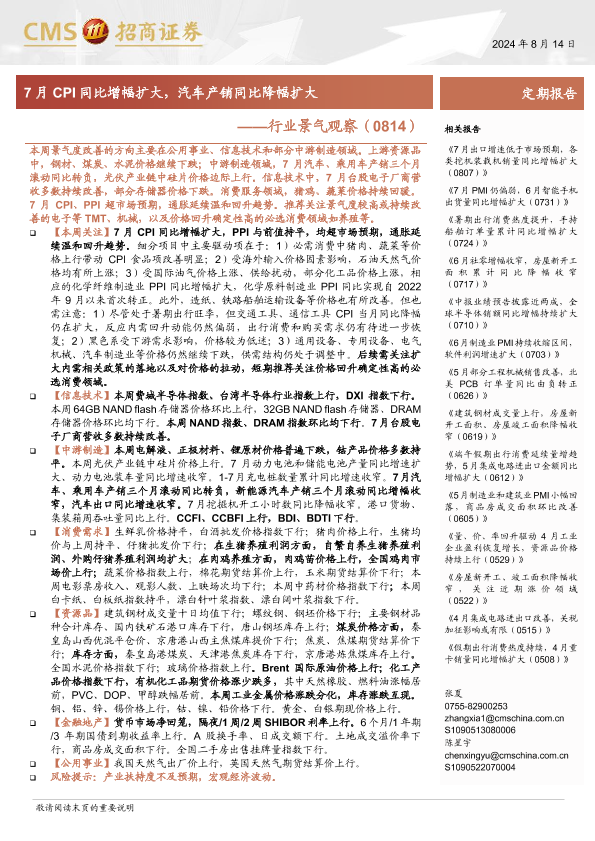 【海通证券】【20240814】汽车行业景气观察:7月CPI同比增幅扩大,汽车产销同比降幅扩大-34页