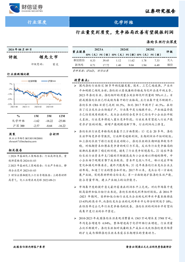 【财信证券】【20240809】涤纶长丝行业深度:行业量变到质变,竞争格局改善有望提振利润-18页