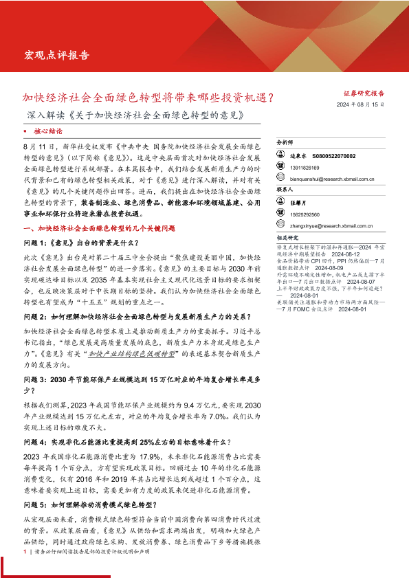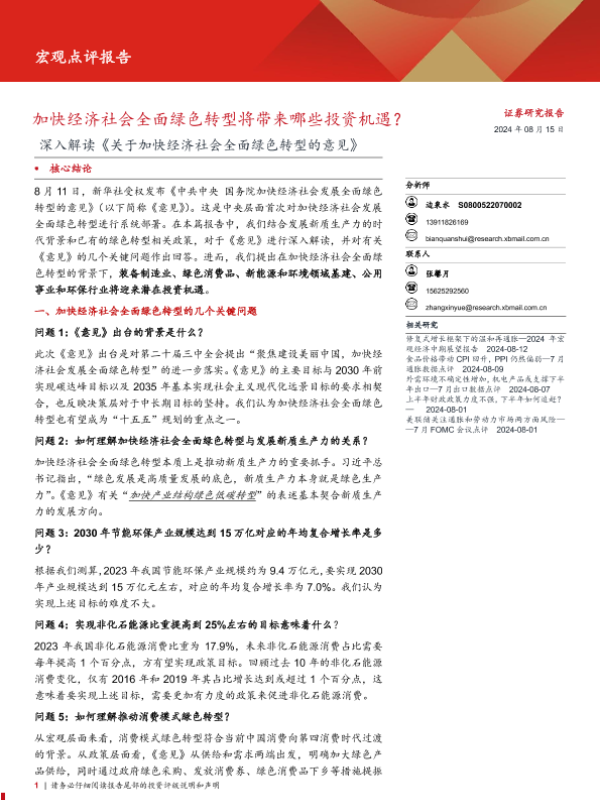 【西部证券】【20240815】深入解读《关于加快经济社会全面绿色转型的意见》:加快经济社会全面绿色转型将带来哪些投资机遇?-16页