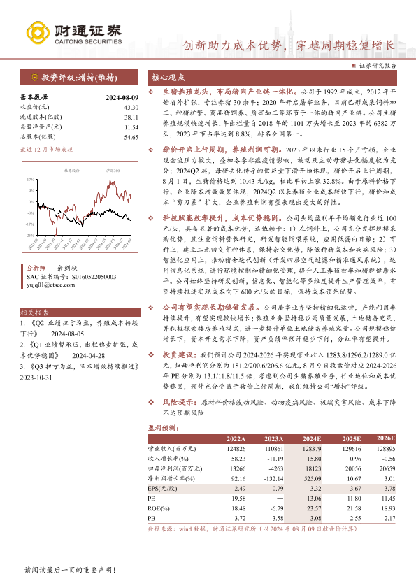 【财通证券】【20240811】牧原股份(002714)创新助力成本优势,穿越周期稳健增长-24页