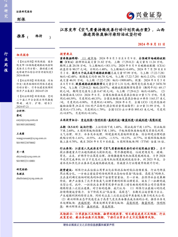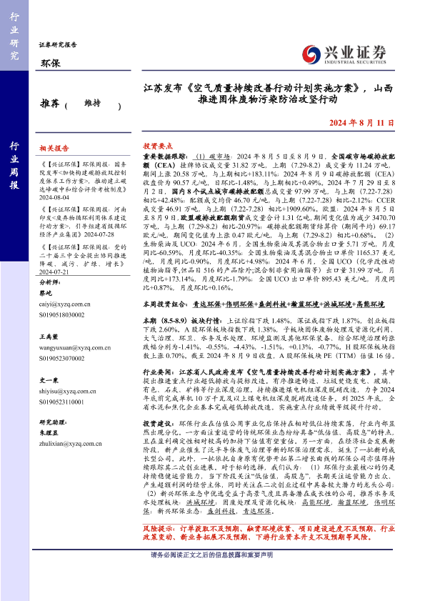 【兴业证券】【20240811】江苏发布《空气质量持续改善行动计划实施方案》,山西推进固体废物污染防治攻坚行动-11页
