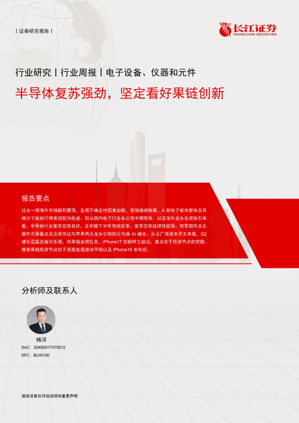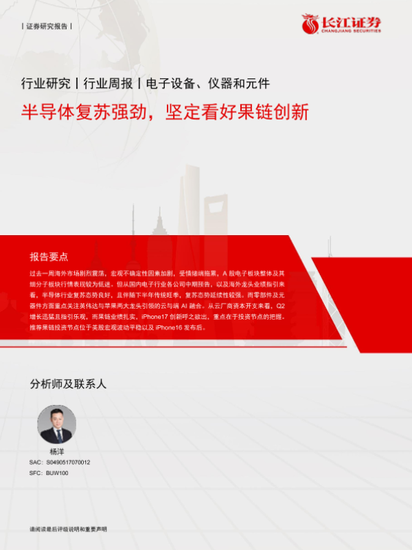 【长江证券】【20240815】电子设备、仪器和元件行业:半导体复苏强劲,坚定看好果链创新-25页