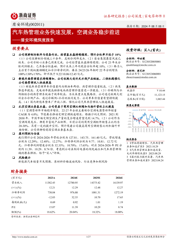 【浙商证券】【20240808】盾安环境(002011)深度报告:汽车热管理业务快速发展,空调业务稳步前进-27页