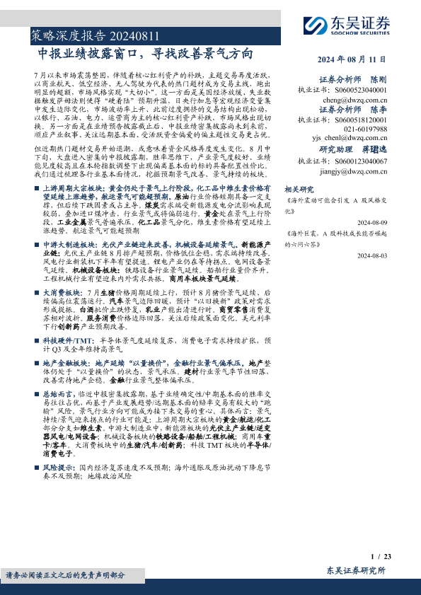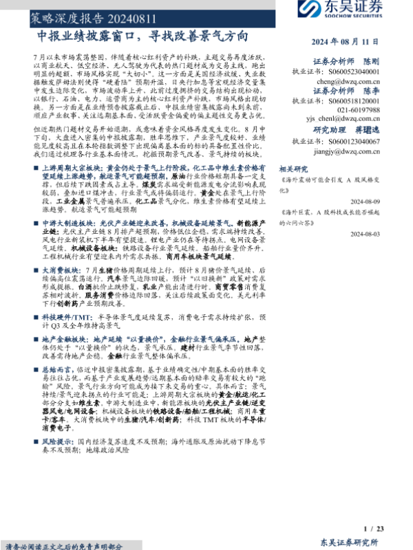 【东吴证券】【20240811】策略深度报告:中报业绩披露窗口,寻找改善景气方向-23页