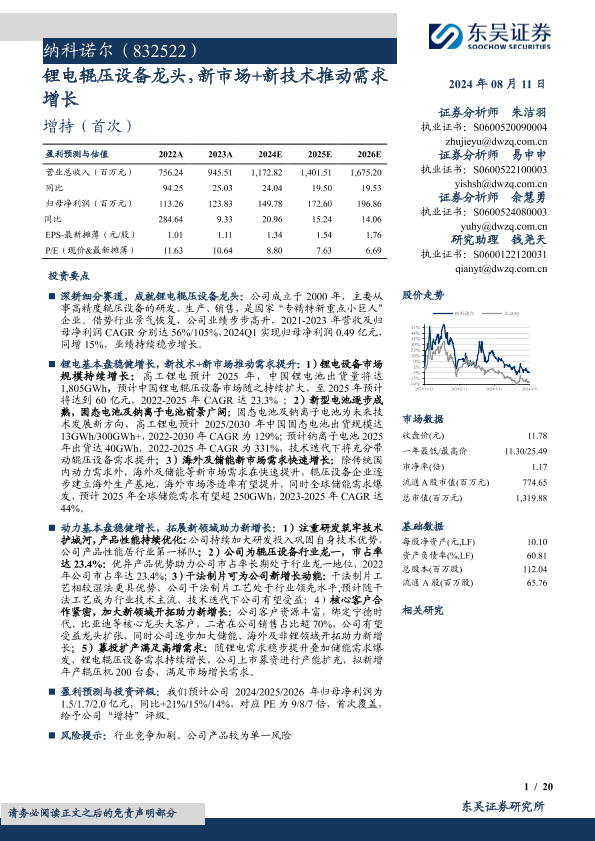 【东吴证券】【20240811】纳科诺尔(832522)锂电辊压设备龙头,新市场+新技术推动需求增长-20页