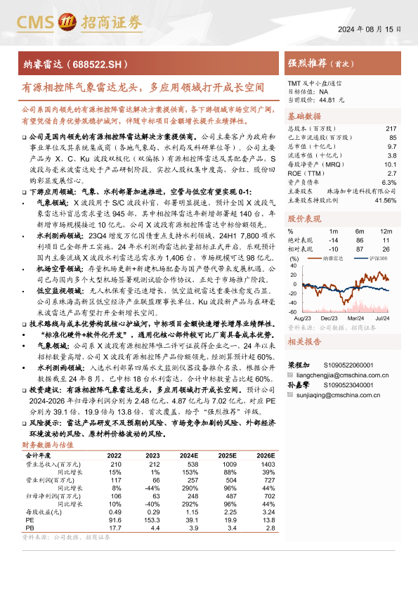 【海通证券】【20240815】纳睿雷达(688522)有源相控阵气象雷达龙头,多应用领域打开成长空间-36页
