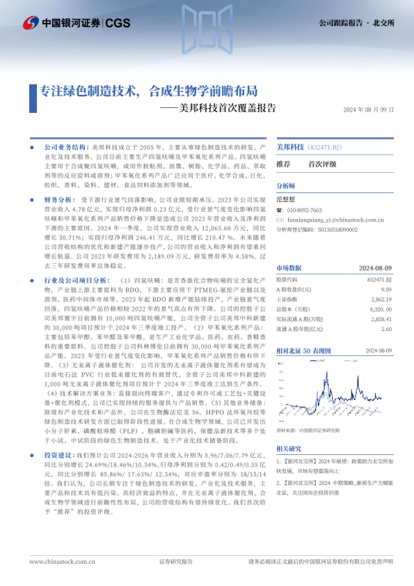 【银河证券】【20240809】美邦科技(832471)首次覆盖报告:专注绿色制造技术,合成生物学前瞻布局-13页