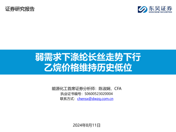 【东吴证券】【20240811】能源化工行业:弱需求下涤纶长丝走势下行,乙烷价格维持历史低位-46页