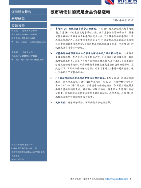 【信达证券】【20240810】被市场低估的或是食品价格涨幅-10页