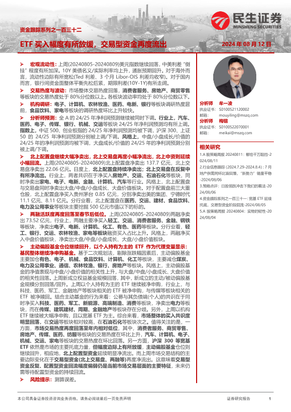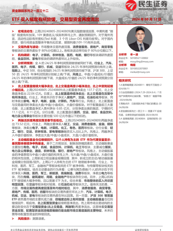 【民生证券】【20240812】资金跟踪系列之一百三十二:ETF买入幅度有所放缓,交易型资金再度流出-38页