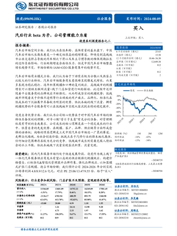 【东北证券】【20240809】途虎-W(09690.HK)系列深度报告之二:汽后行业beta为矛,公司管理能力为盾-29页