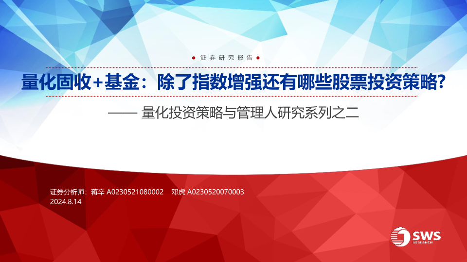 【申万宏源】【20240814】量化固收+基金:除了指数增强还有哪些股票投资策略?-40页