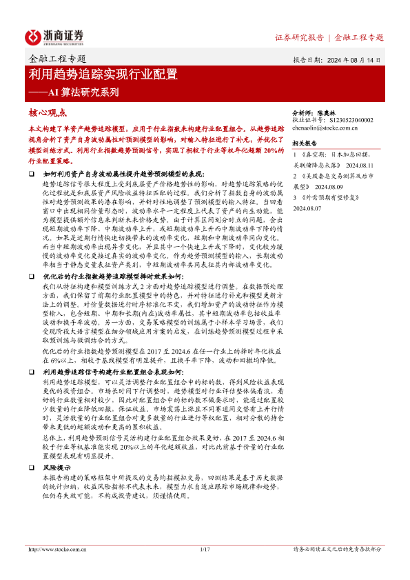 【浙商证券】【20240814】金融工程专题:AI算法研究系列-利用趋势追踪实现行业配置-17页