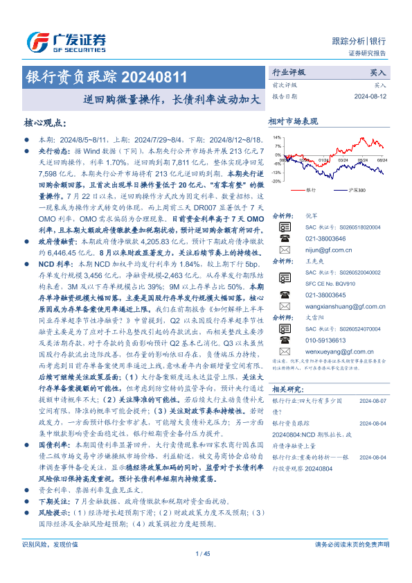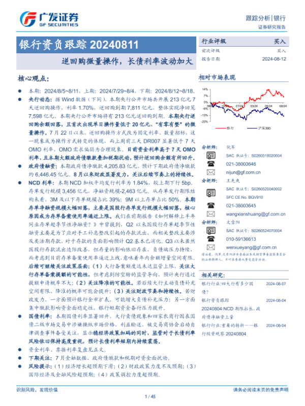 【广发证券】【20240812】银行业资负跟踪:逆回购微量操作,长债利率波动加大-45页