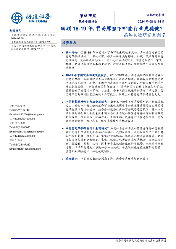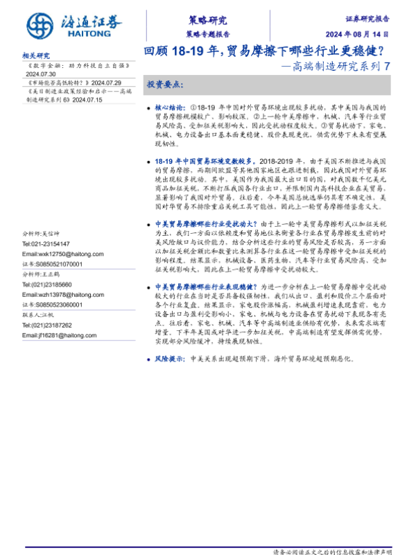 【海通证券】【20240814】回顾18_19年,贸易摩擦下哪些行业更稳健?—高端制造研究系列 7-12页