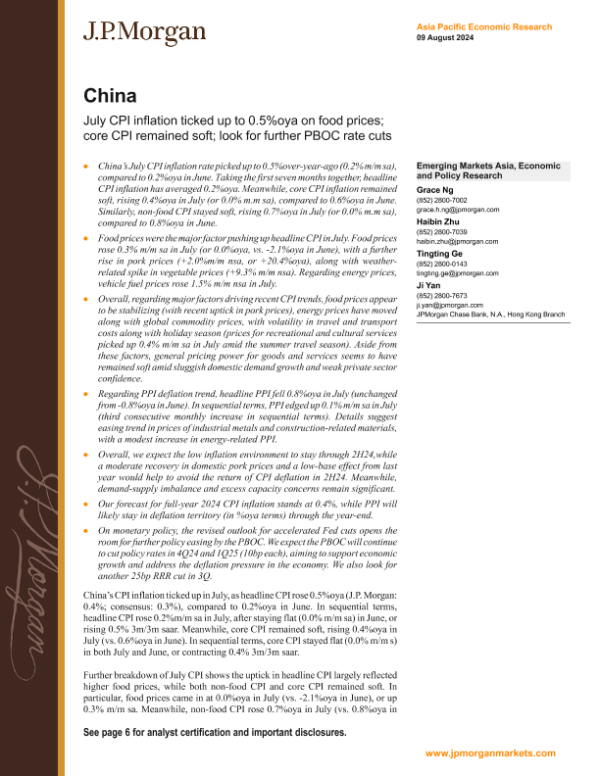 【J.P. Morgan】【20240809】中国7月CPI通胀率升至0.5%,食品价格上涨推动-10页