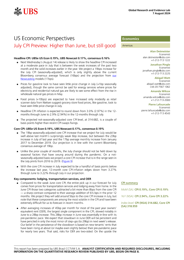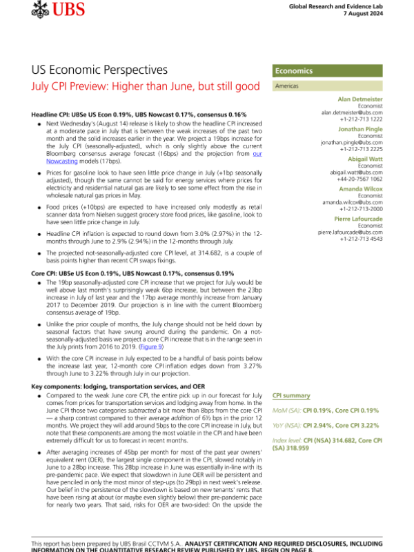 【UBS Brasil CCTVM S.A.】【20240807】US Economic Perspectives _July CPI Preview Higher than June-11页