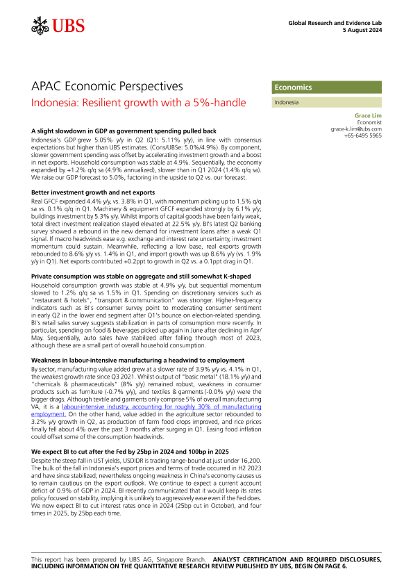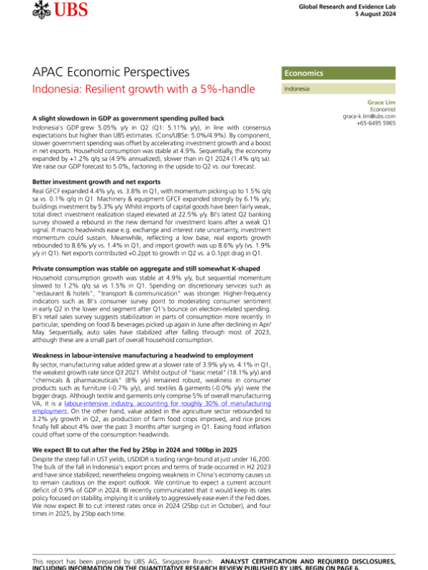 【UBS AG&Singapore Branch】【20240805】APAC Economic Perspectives Indonesia Resilient growth with...-9页