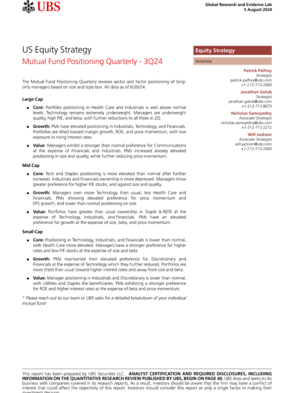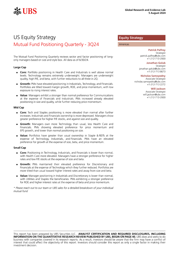 【UBS Securities LLC】【20240805】US Equity Strategy Mutual Fund Positioning Quarterly - 3Q24-44页