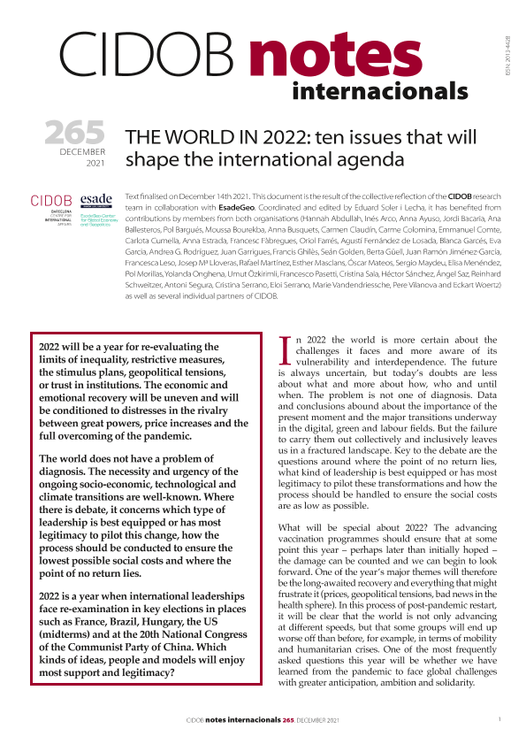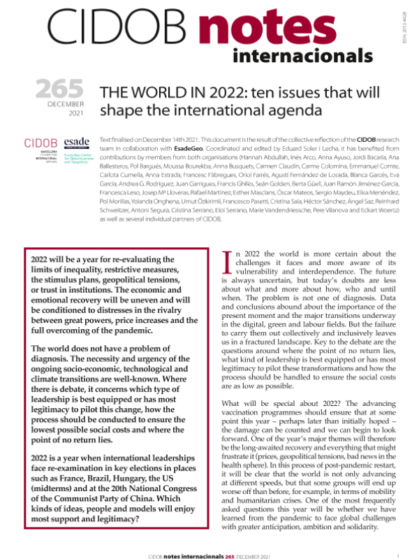 【巴塞罗那国际事务研究中心(CIDOB)】【20211214】2022年的世界:决定国际议程的十大问题-20页