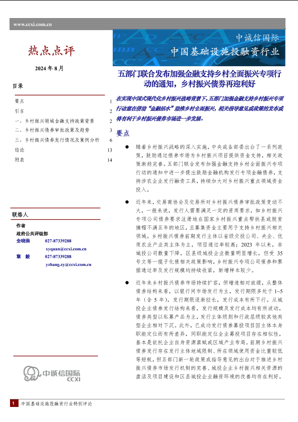 【中诚信国际】【202408】五部门联合发布加强金融支持乡村全面振兴专项行动的通知,乡村振兴债券再迎利好-19页
