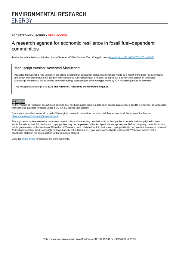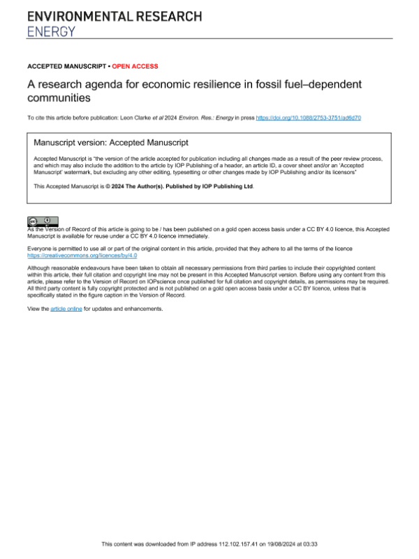 【IOP Publishing Ltd.】【20240101】A research agenda for economic resilience in fossil fuel–dependent communities-22页