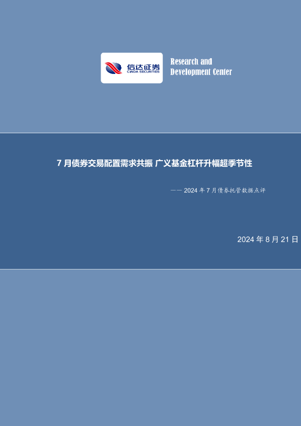 【信达证券】【20240821】2024年7月债券托管数据点评:7月债券交易配置需求共振,广义基金杠杆升幅超季节性-11页