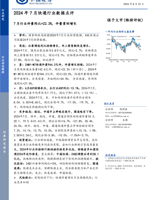 【华福证券】【20240822】2024年7月快递行业数据点评:7月行业件量同比增长22.2%,件量重回增长-10页