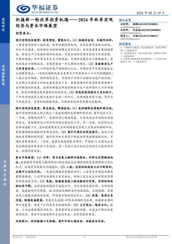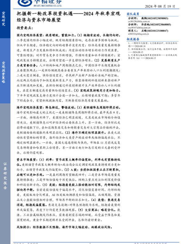 【华福证券】【20240819】2024年秋季宏观经济与资本市场展望:把握新一轮改革投资机遇-29页