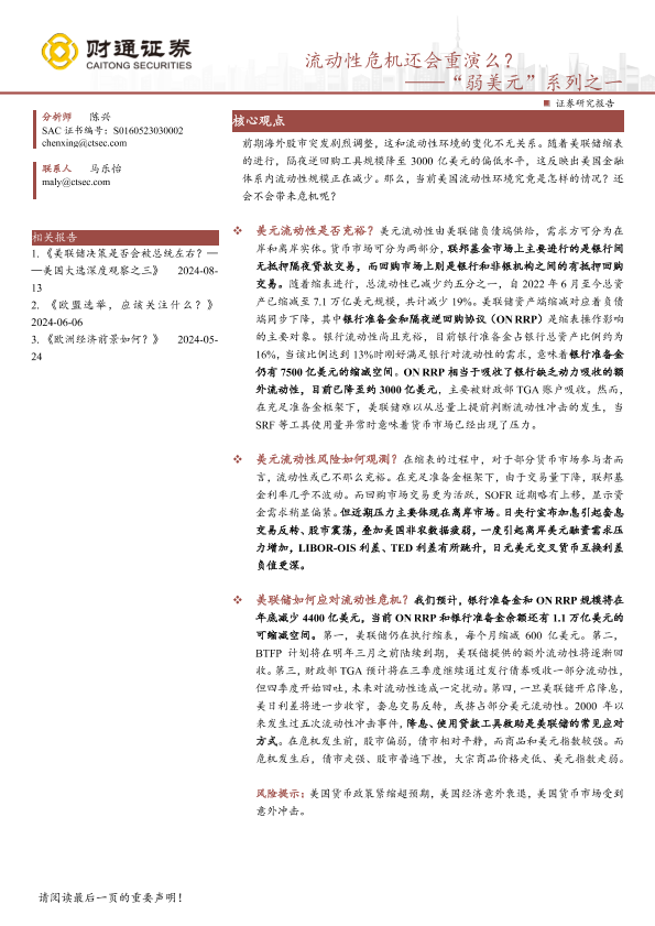 【财通证券】【20240818】“弱美元”系列之一:流动性危机还会重演么?-16页