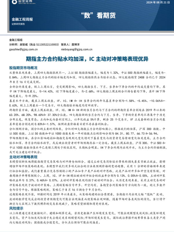 【国金证券】【20240821】“数”看期货:期指主力合约贴水均加深,IC主动对冲策略表现优异-12页