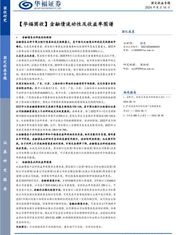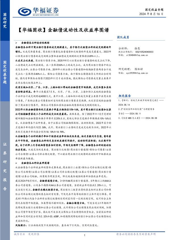 【华福证券】【20240816】【华福固收】金融债流动性及收益率图谱-10页